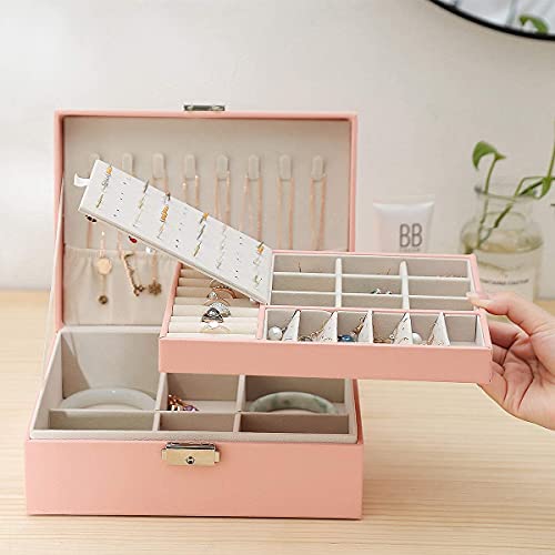 ANNA TOSANI - ANNA TOSANI Leather Jewelry Box, Jewelry Organizer with Lock 2 Layers Organizer Case Travel Jewelry Box Small Portable Jewelry Box Jewelry Storage Box with Removable Separator Clasp for Earrings Rings