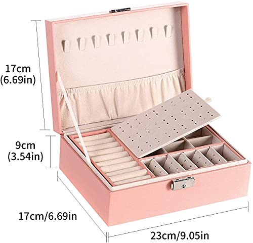- 🎄【LARGE CAPACITY】 The jewelry box has 2 layers, which is large enough for you to place all your accessories. 23 x 17 x 9 cm With different compartments The spacious space holds all kinds of jewelry, including necklaces, earrings, bracelets, rings, hair accessories, watches, etc. and convenient hooks for hanging necklaces or bracelets to prevent them from getting tangled or tied