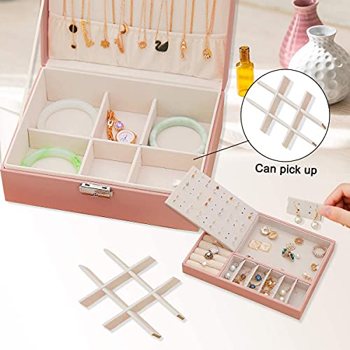 - 🎄【ALL-IN-ONE STACKABLE JEWELRY BOXES】Jewelry organizer box design with the structure of 2 layers multiple removable compartments. Large capacity and different designs, includes various storage rooms, ring holder, earring cards, necklace hooks and extra removable space. The jewelry organizer box not only keeps your dresser tidy but also works as a delicate ornament for your house. Lightweight and portable