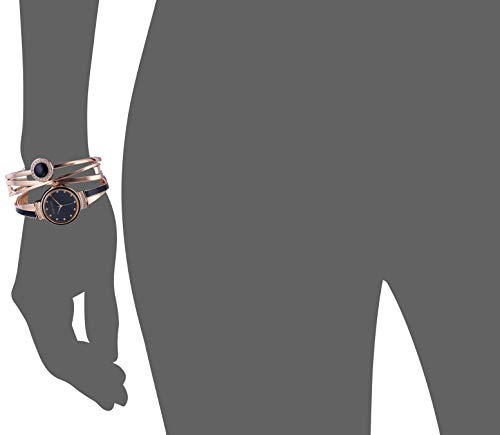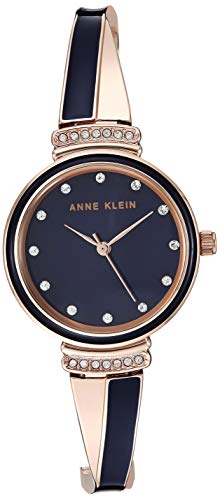 Anne Klein - Anne Klein Women's Premium Crystal Accented Watch and Bangle Set, Gold/Navy Blue, Japanese