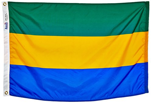 Annin Flagmakers - اني فلاج ميكرز نموذج 192753 علم الغابون من النايلون سولار جارد NYL-Glo، 2×3 قدم، صنع في الولايات المتحدة الأمريكية بنسبة 100% وفقًا لمواصفات تصميم الأمم المتحدة الرسمية