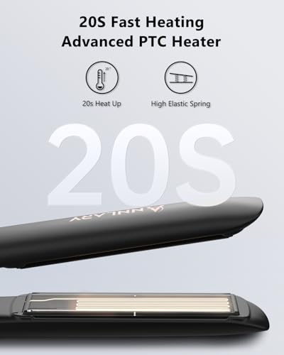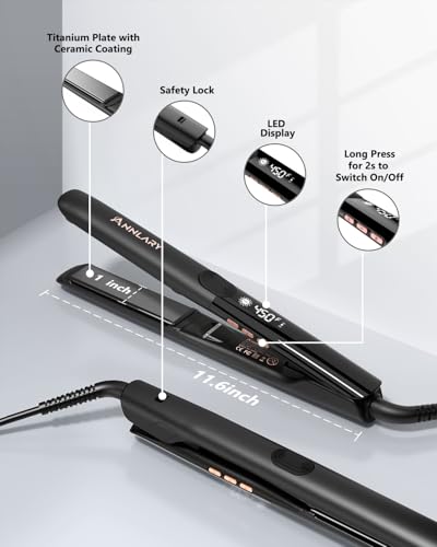 ANNLARY - مكواة فرد الشعر من انلاري، لوح تيتانيوم احترافي 2.5 سم مع طلاء سيراميك أيوني مزدوج الجهد وسيليكون مضاد للكي للحصول على شعر أقل تجعيد وأكثر لمعان ونعومة