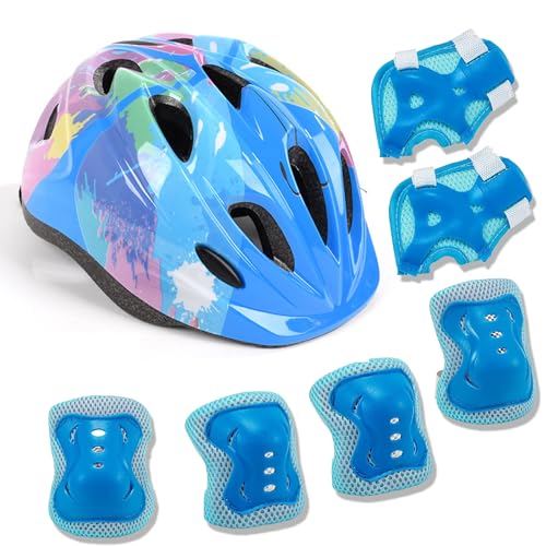 AnnuoYi - Kids Bike Helmet,Kids Helmet and Pads Set,Kids Bike Helmets For Boys And Girls、With Protective Sports Gear Set Knee Elbow Pads Wrist Guards,For Skating Bike Scooters(3-7 Years Old)