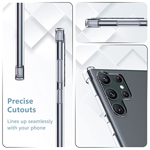 - 1. [التوافق] - جراب موبايل شفاف ناعم ومرن مصنوعة من البولي يوريثين الحراري ومتوافقة فقط مع سامسونج جالاكسي S23 الترا. (غير متوافق مع الإصدارات الأخرى، يرجى التأكد من موديل الموبايل قبل الشراء.) فتحات بسيطة ودقيقة تمنع دخول الغبار والخدوش بفعالية.