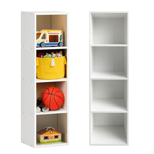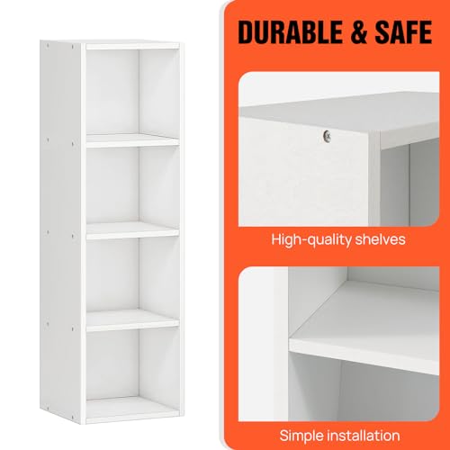 - Size - With a compact and space-saving design, this narrow and tall bookshelf with closed back allows you to access more storage and display space, easpecially suitable for any space in your home. Overall Size: 24D x 32W x 106H cm