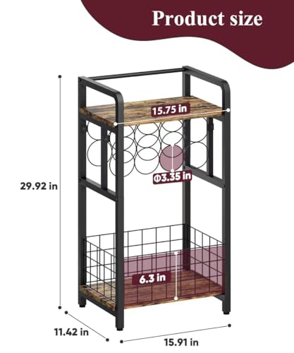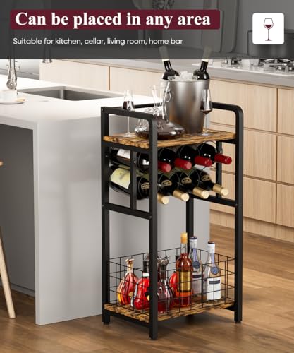 - 【Stable Structure】: This wine holder stand with wine storage and bottle shelf is made of high-quality wood and a sturdy metal frame with powder coating. This wine storage is more stable and solid, each layer can bear a weight of 50 pounds and can perfectly store your wine without shaking. The design of the home bar combines durability and a rustic aesthetic, making it the highlight of your home and kitchen.