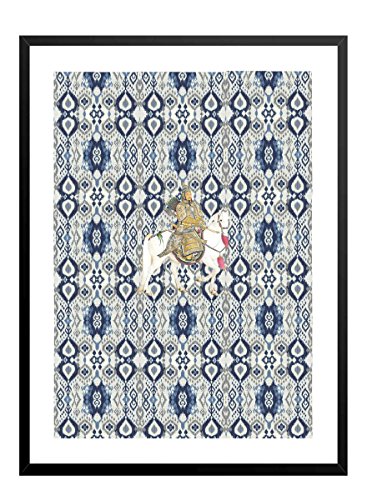 Antaram - لوحة فنية جدارية من قماش ايكات باللونين الازرق والابيض من انتارام ديزاينز