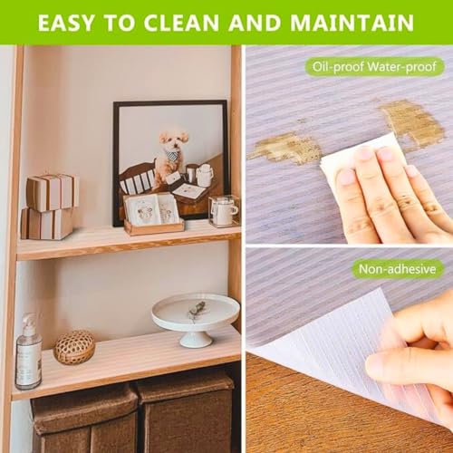 - سهل التنظيف ومقاوم للماء: يمكن إزالة بطانة الرف غير اللاصقة بسهولة من خزائنك وتنظيفها بالصابون المخفف أو قطعة قماش مبللة أو إسفنجة عندما تتلطخ بطانة رف المطبخ بالزيت أو الأوساخ الأخرى، وتجف بسرعة. لذلك يمكنك الحفاظ عليها نظيفة وبكل سهولة. تتميز مفارش خزانة المطبخ بأنها مقاومة للماء. لذلك فهي تمنع الخزائن والأدراج والثلاجات من أن تصبح لزجة ودهنية.