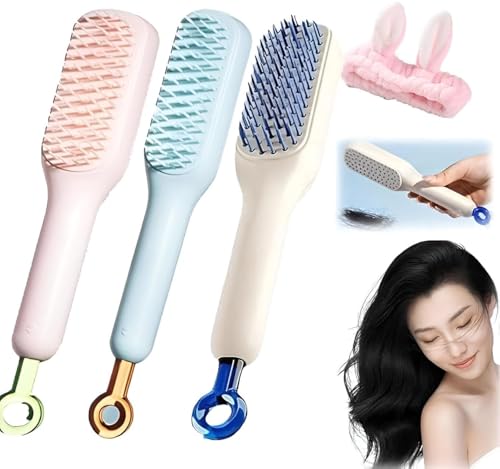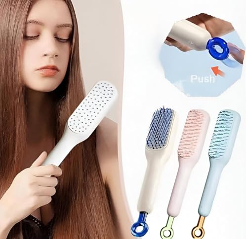 Generic - مشط تدليك مضاد للكهرباء الساكنة، فرشاة دوارة ذاتية التنظيف بتقنية السحب لتمشيط بدون تشابك وعناية لطيفة بفروة الرأس، للاستخدام اليومي، لون أبيض