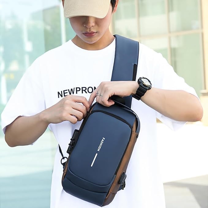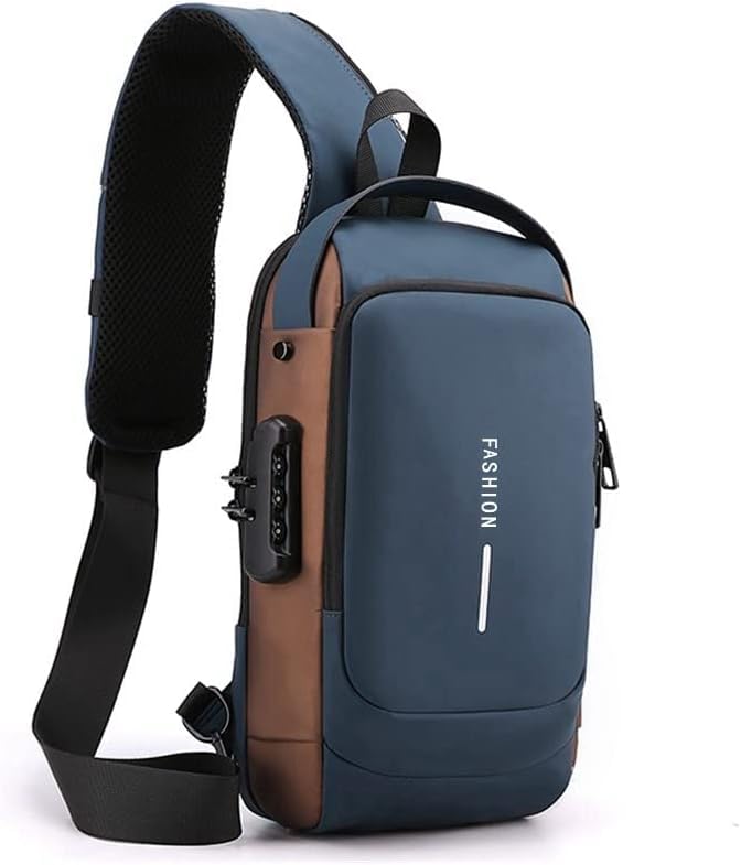 Generic - Anti-Theft Crossbody Backpack Casual Chest Bag Multi-Pocket Hand Shoulder Bag with USB Charging Port and Travel Password Lock Waterproof for Men and Women Model 1 Blue Gold, M