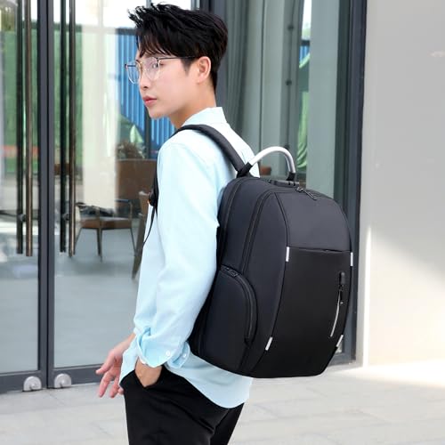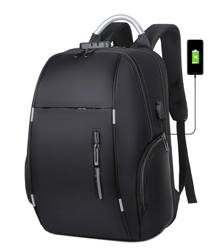 LEZOY - حقيبة ظهر مضادة للسرقة لأجهزة الكمبيوتر المحمولة مزودة بمنفذ شحن USB وقفل بكلمة مرور، حقيبة ظهر متينة مقاومة للماء مناسبة للجامعة أو العمل أو المدرسة من بلاك.