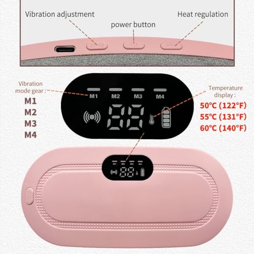 ANTIL'S - ANTIL'S Portable Cordless Heating Pad for Menstrual Pain Relief | Adjustable 3 Heat & 4 Massage Modes | Rechargeable Belly and Back Warmer for Women | Period Cramp Relief Belt – Pink
