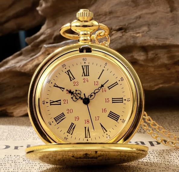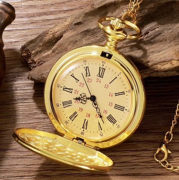 Generic - ساعة جيب كوارتز عتيقة بأرقام رومانية من ستيمبنك بهيكل ذهبي وقلادة وسلسلة للرجال والنساء