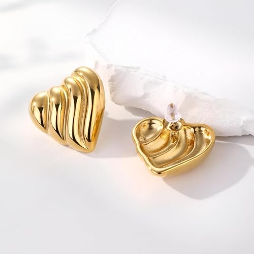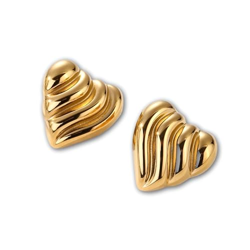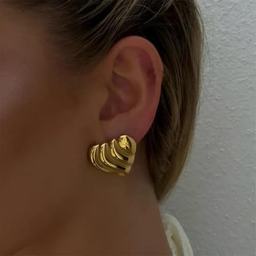 Generic - Antitarnish Textured Studs – Long-lasting gold-plated earrings with ripple pattern, non-irritating for daily wear, perfect blend of simplicity and sophistication.