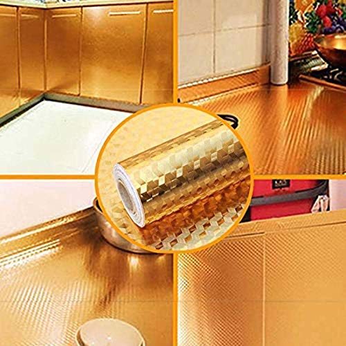 Antokin - ورق حائط ذهبي مقاوم للزيوت والماء من انتوكين فريش كيتشن الومنيوم باكسبلاش لبطانة الموقد والخزانة ذاتي اللصق 2 متر