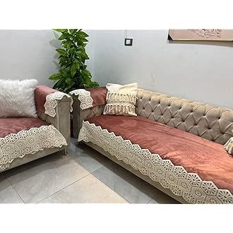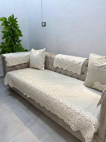 - ELEGANT DESIGN: Beautiful decorative sofa cover set featuring intricate white lace trim with hexagonal floral pattern adds a sophisticated touch to your furniture