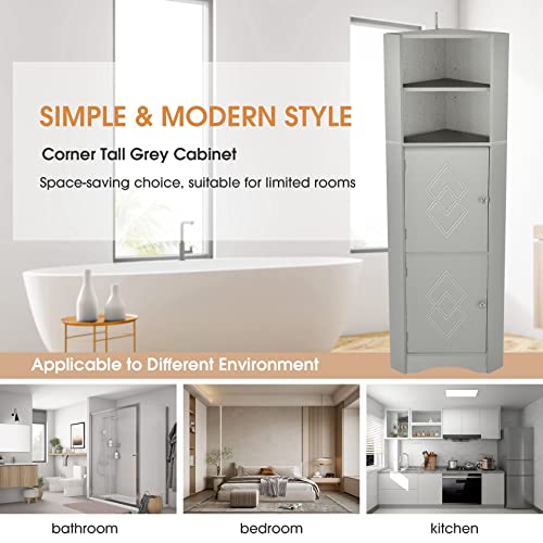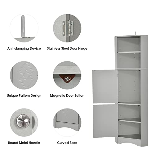 ANTSKU - Tall Bathroom Corner Cabinet, Triangle Bathroom Storage Cabinet with Doors, Adjustable Shelves, Gray
