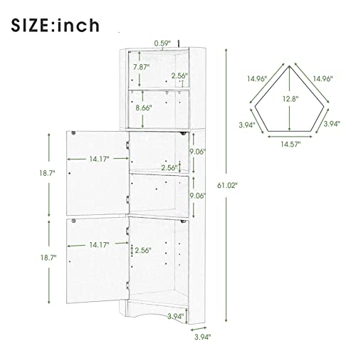 - 🚿SPACE SAVING CORNER DESIGN: Do you want to make the most use of a corner or wall space in your house? Designed in right-angle structure that is perfectly coincided with the corner position, this tall corner cabinet with doors maximizes storage space and keeps your everyday essentials at you fingertips. In addition, the tall storage cabinet equips with an anti-tip kit for more protection in different scenes, thus ensuring safer use