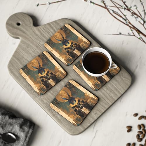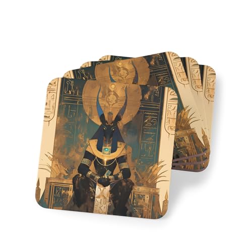 Generic - Anubis Throne Coaster Set of 4 – Egyptian God Design – Non-Slip Rubber Drink Coasters for Table & Office Decor - Set of 4