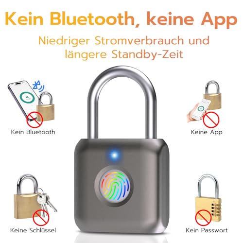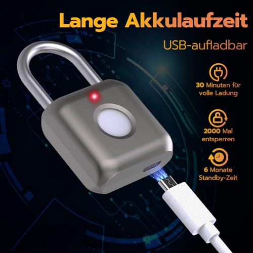 Anweller - Anweller Fingerprint Lock, Smart Lock, Padlock, Fingerprint, Lock with Fingerprint, Small for Gym, Office, Cupboard and Much More, Grey