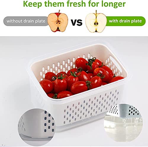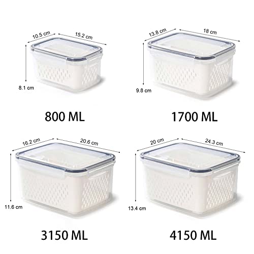 Anyuainiya - Fruit Storage Containers For Fridge, 4 Pack Leakproof Food Storage Containers with Removable Colander, Dishwasher & Microwave Safe Fridge Organizer, Multi-Size Large Capacity with Lid &