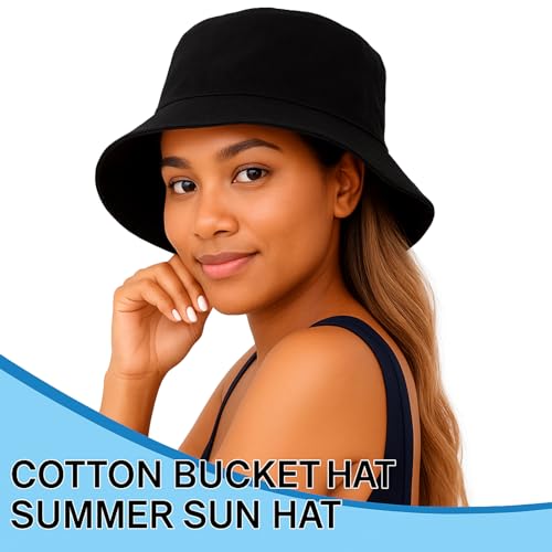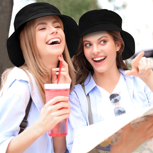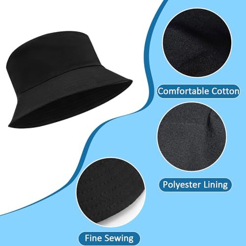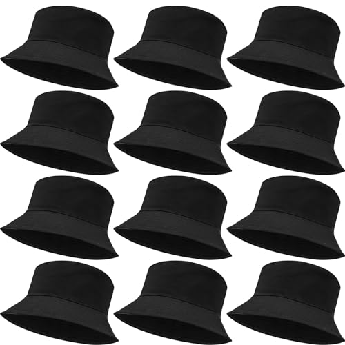 Anzices - 12 Pack Bucket Hats for Women Men, Solid Color Unisex Packable Sun Hat Fishman Cap for Holiday & Travel, Black, One size