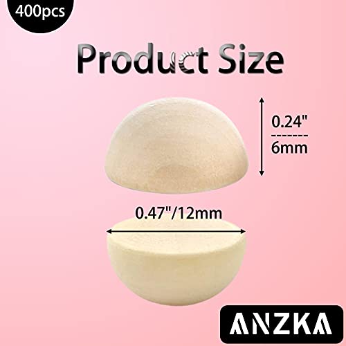 ANZKA - 400pcs Mini Half Wood Beads, 12mm Unfinished Round Split Wooden Balls for Craft Paint, 1/2 inch Wooden Hemisphere Bulk