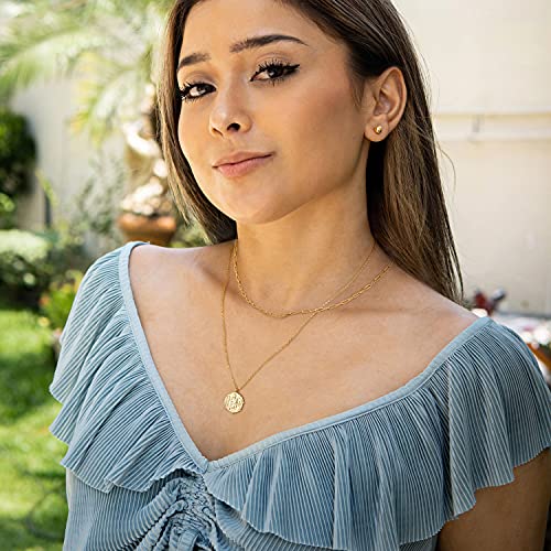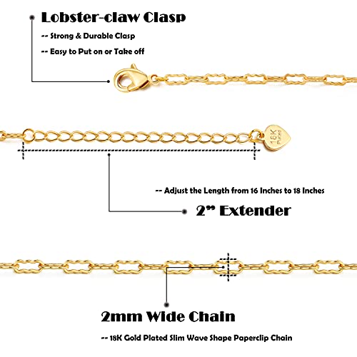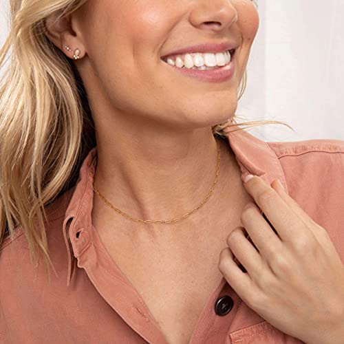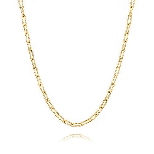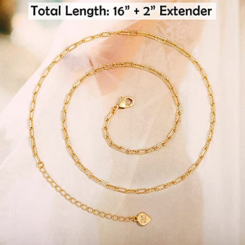 Aobei Pearl - Aobei Pearl 18k Gold Paperclip Chain Choker Satellite Chain Lava Bead Pendant Necklace Dainty Jewelry for Women 16'', Metal- multi