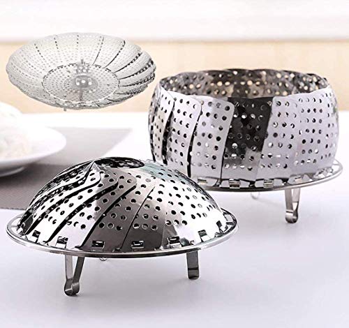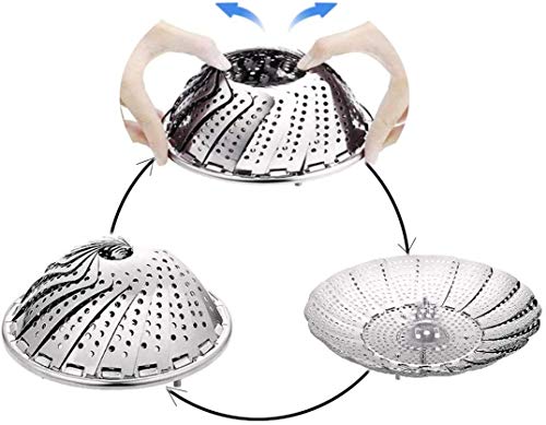 - Folding steamer - can expand and adjust to fit different size pots and pans. Opens like a flower and creates a bowl shape and can be opened further into a flat style plate