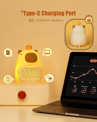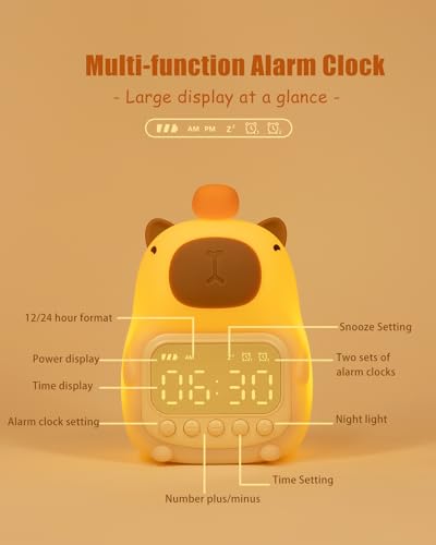 Aokpsrt - Capybara Alarm Clock with Night Light, Rechargeable Silicone Lamp Time to Wake Clock,Cute Animal Tabletop Lamp, Perfect Sleep Companion for Babies, Kids, and Teens