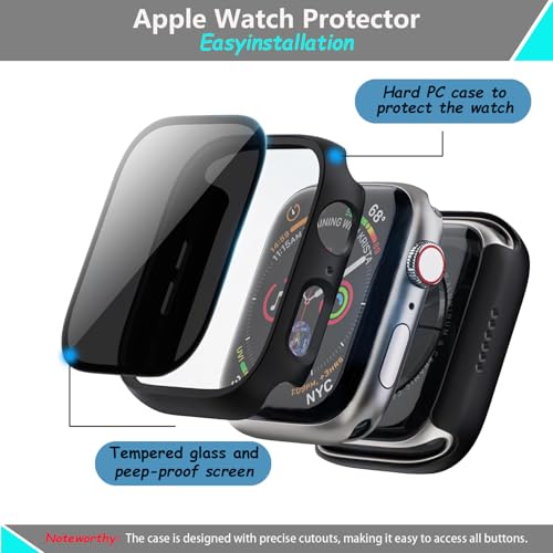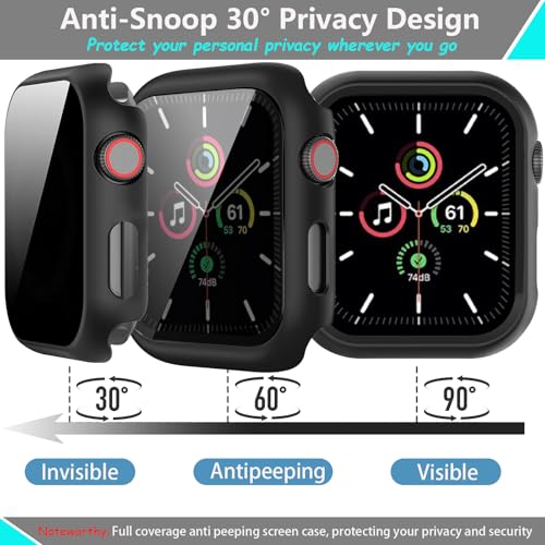 AOKUTDA - جراب حماية ساعة آبل 42 ملم من اوكوتدا من 3 قطع - مضاد للتجسس ويحفظ الخصوصية 30° - واقي شاشة رفيع من زجاج مقوى بتغطية تامة - إكسسوارات ساعة آبل (3 قطع - أسود - 42 ملم - موديل X)
