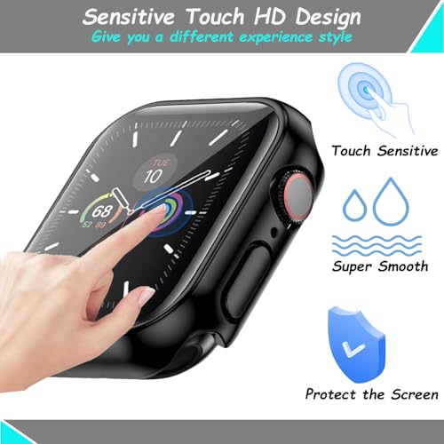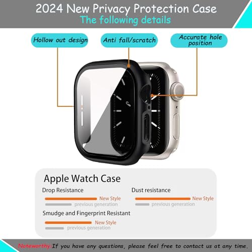 - 【حماية كاملة]】: جراب ساعة آبل الصلب هذا مصنوع من مادة البولي كربونات لحماية ساعة آبل الخاصة بك من الصدمات والخدوش والسقوط العرضي، واقي شاشة مدمج من الزجاج المقوى عالي الدقة لمساعدتك في الحفاظ على تجربة اللمس الأصلية، هذا الخيار الأفضل.