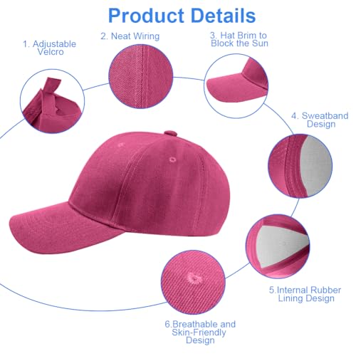 Aomig - Aomig Baseball Cap for Men, Classic Plain Baseball Hats Polo Style Hat, Adjustable Sports Casual Cap Breathable Summer Sun Visor Hat for Outdoor Rose Red