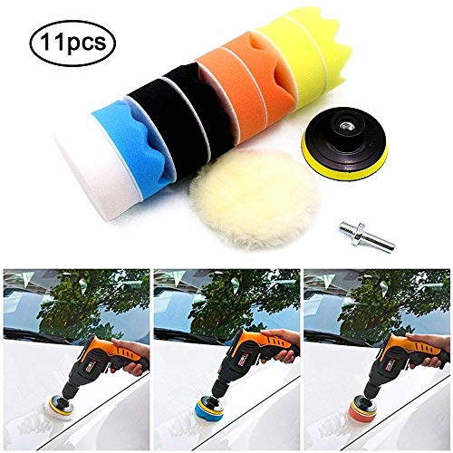 AONA - AONA 11pcs Polishing Pads for Car Polisher Sponge Buffing Pads Car Polishing Kit with Drill Adapter Car Care Waxing Buffing Pads for Car Polisher Buffer Attachment