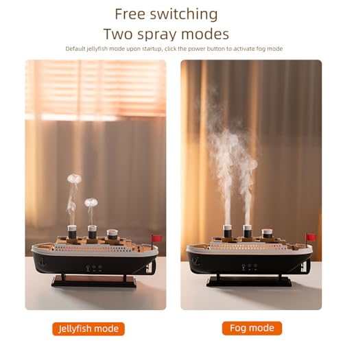 - 7 Colorful Lights + 2 Spray Modes :Ship humidifier & aroma diffuser offers 7 ambient light options and two spray modes to create the perfect atmosphere for any occasion