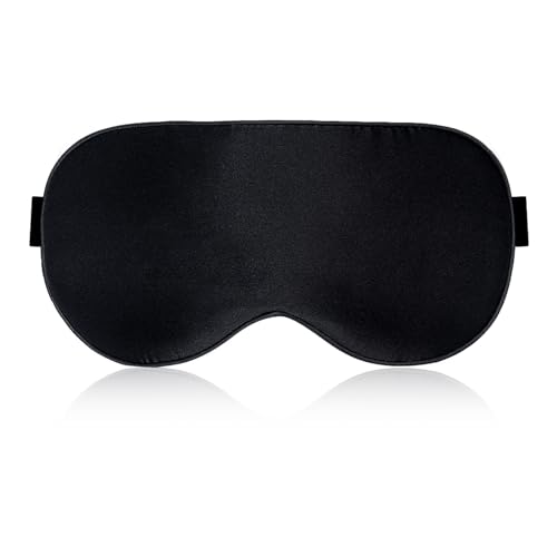 Aosun - Sleep Mask, 100% Pure Mulberry Silk Sleep Mask, Hypoallergenic Blackout Sleep Mask with Adjustable Headband (Black)