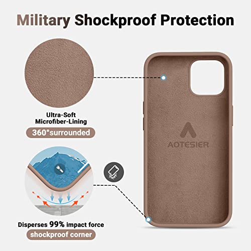 AOTESIER - AOTESIER Compatible with iPhone 12 & iPhone 12 Pro 6.1 inch, Silky Touch Soft Liquid Silicone Rubber Anti-Fingerprint Flexible Full Body Protector (Light Brown)
