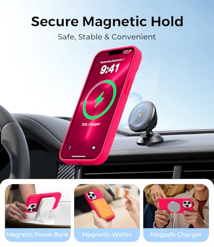 AOTESIER - AOTESIER Magnetic for iPhone 13 Pro Max Case, [Compatible with MagSafe][Military Shockproof Protection] Silicone Case with Soft Microfiber Lining, Camera & Screen Protection 6.7 inch, Hot Pink