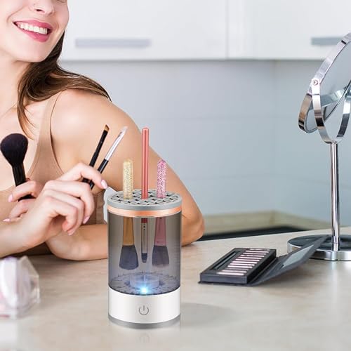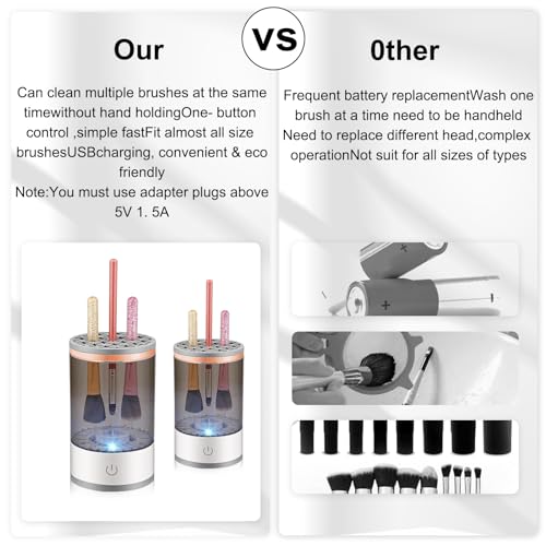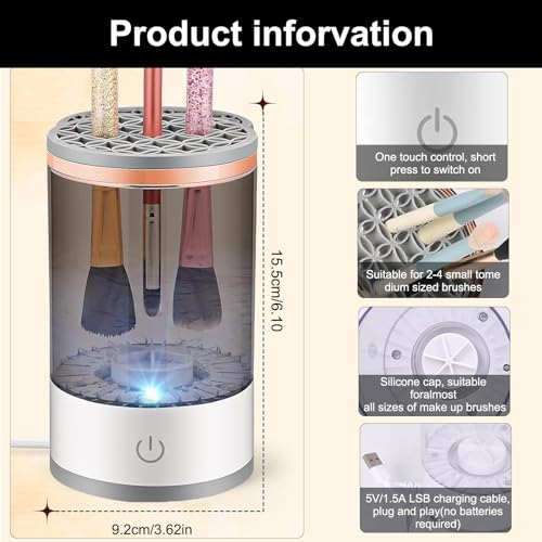 - 【Full Compatibility】Electric makeup brush cleaner is suitable for all kinds of brushes, including short brushes and double-ended brushes.Electric makeup brush cleaner can hold multiple makeup brushes at the same time, saving time and effort.