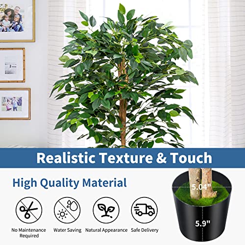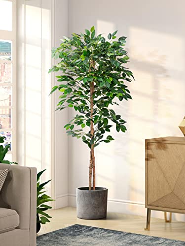 - 【Vivid Ficus Artificial Trees】: The design details of this artificial ficus tree are vivid and lifelike. Even from a close look, you can't tell the difference between our artificial ficus trees and real one. Artificial trees can fill the vacant space of front porch and front door. It can be placed in kitchens, living rooms, bedrooms, meeting rooms, hotels, shops and other places. A perfect gift for friends or family at Christmas, Thanksgiving or when hourse warming.