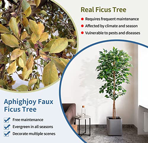 - 【Artificial Plants for Home Decor】: Faux plants indoor is perfect for any home environment decoration. Fake tree is very suitable for placing on the balcony, terrace or patio. It will add a luxurious look to your home or office. Carefully made to imitate the naturally appearance of an artificial ficus tree in real life. Faux tree is very suitable for any room, office and stores decoration. Aphighjoy ficus tree will let you feel the existence of nature. Nice housewarming gift.