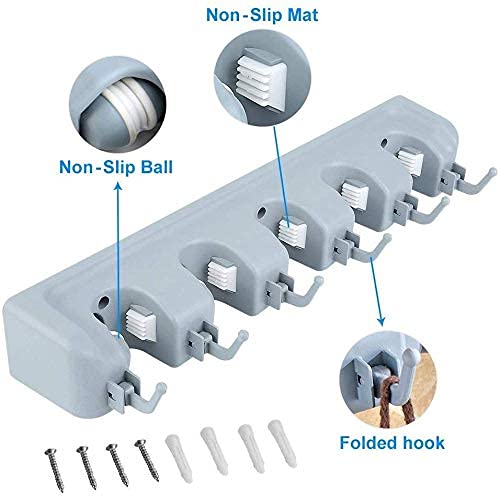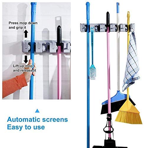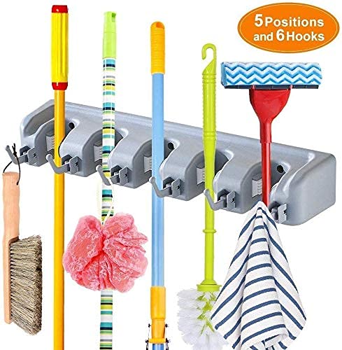 Generic - حامل سحري متعدد الأغراض يثبت على الحائط من ابنا شوب، خطافات تخزين منظمة للمقشة والشرشوبة، 5 أوضاع و6 خطافات للحمام والمطبخ والحديقة