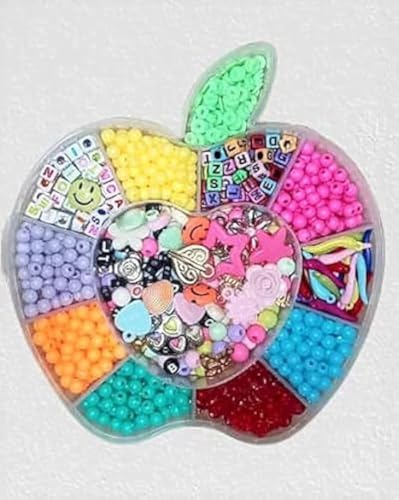 Generic - Apple Bead Case for Girls Jewelry Making Accessories - Glass Seed Beads Kit for DIY Bracelet Jewelry Making, with Elastic String Cords and Storage Box