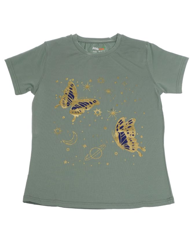 Apple Kids - Girls Cotton Half Sleeves T-Shirt Printed Butterfly