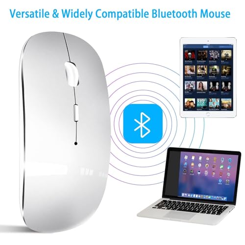 Aputue - Bluetooth Mouse, Slim Wireless Computer Mouse in Silver Color, Long Battery Life for MacBook Pro/Air and PC Users, Portable Design for Travel