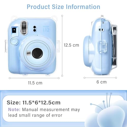 - 🤳【Waterproof and Dustproof】Size reference of the hard pvc protective case: 4.5”*4.9”*2.3”(L*W*H). Waterproof and dustproof PC material makes it smooth and high transparency, effectively blocking the damage. Protect the instax mini 12 from bumps and scratches, etc.
