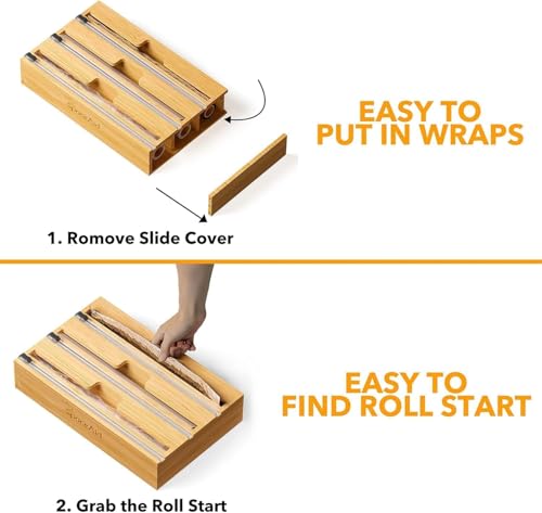 - ✂️【Precision Cutting Technology】 - Equipped with sharp stainless steel blades that ensure clean, straight cuts every time, the integrated slide cutter system prevents wrap tearing and keeps the roll ends securely in place for next use, eliminating frustration.