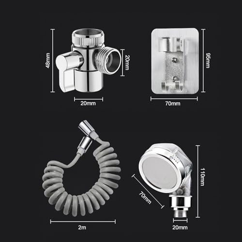 - 🚿【تركيب سهل】قطر توصيل رأس الدش هو جي 1/2 ذكر بينما قطر توصيل طرفي خرطوم الدش هو جي 1/2 أنثى. وقطر جزء التوصيل بين المحول والحنفية هو 22 ملم ذكر.