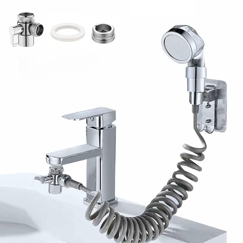Aputue - بخاخ حنفية الحوض، ملحق دش لحنفيات الحمام، ملحق بخاخ حنفية الحوض مع خرطوم تلسكوبي، رأس دش استحمام للاستحمام للحيوانات الأليفة، لغسيل الشعر وحوض الاستحمام من ابوتو