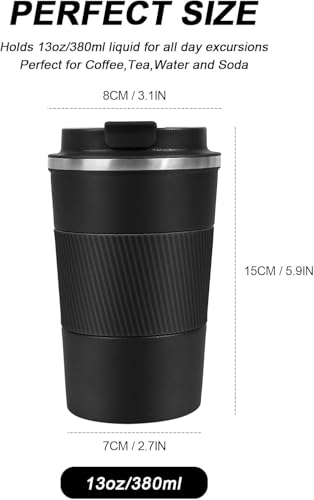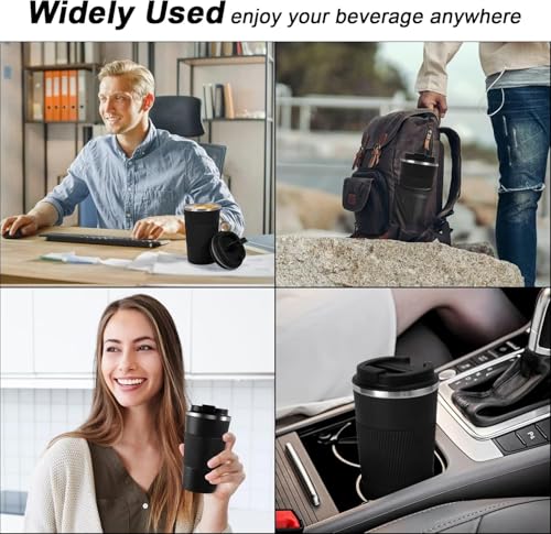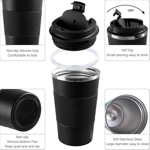 - ☕【Leak-Proof Design】The travel coffee mug lid features an airtight silicone seal to prevent beverages from spilling. Vent holes in the lid allow beverages to flow smoothly without gushing or spilling. The rubber design on the bottom prevents the cup from slipping or tipping over.